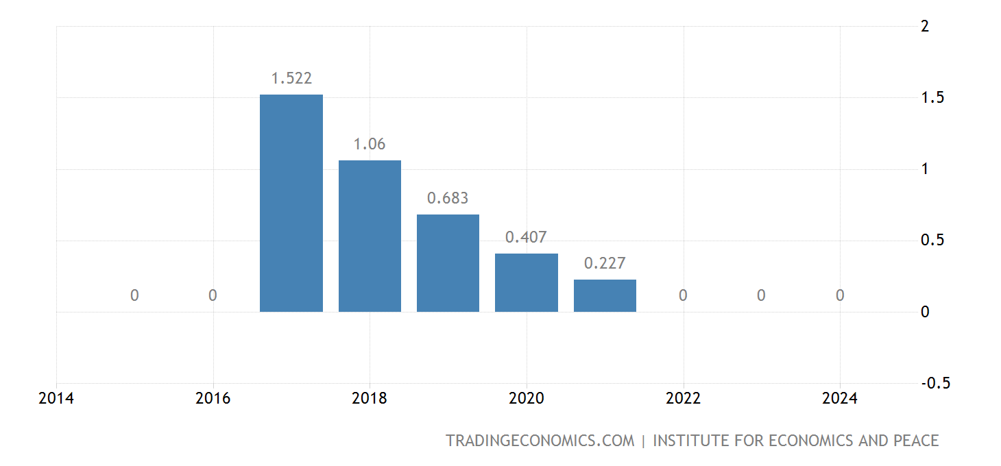 Taiwan Terrorism Index 2002 2019 Data 2020 2021 Forecast
